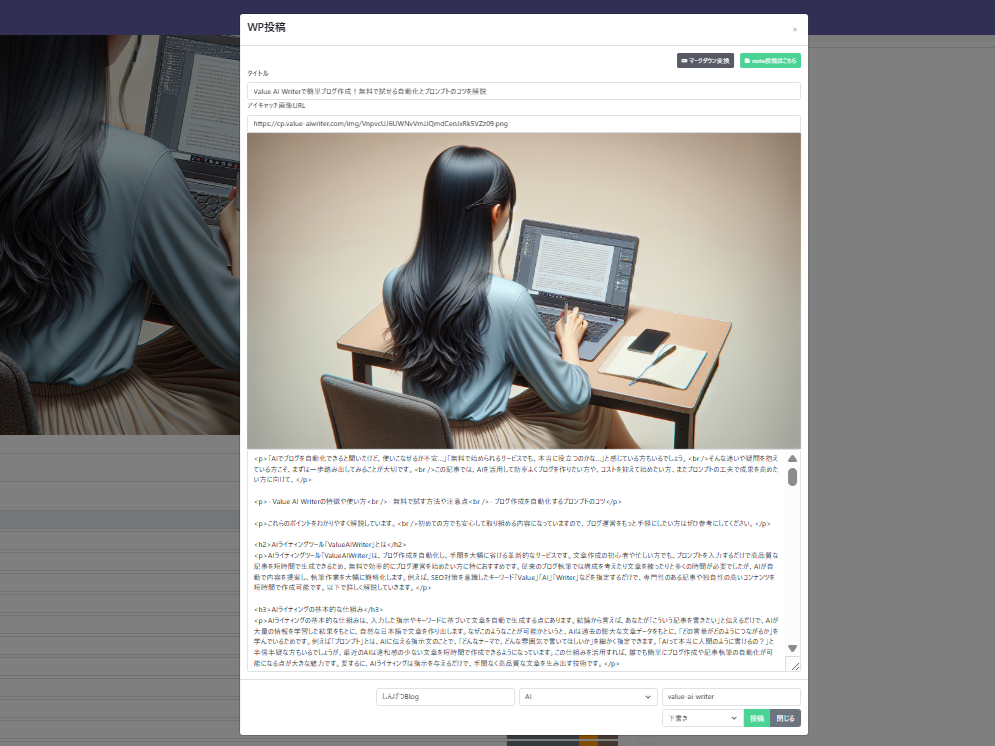 AIライティングツール「ValueAIWriter」は、ブログ作成を自動化し、手間を大幅に省ける革新的なサービスです。